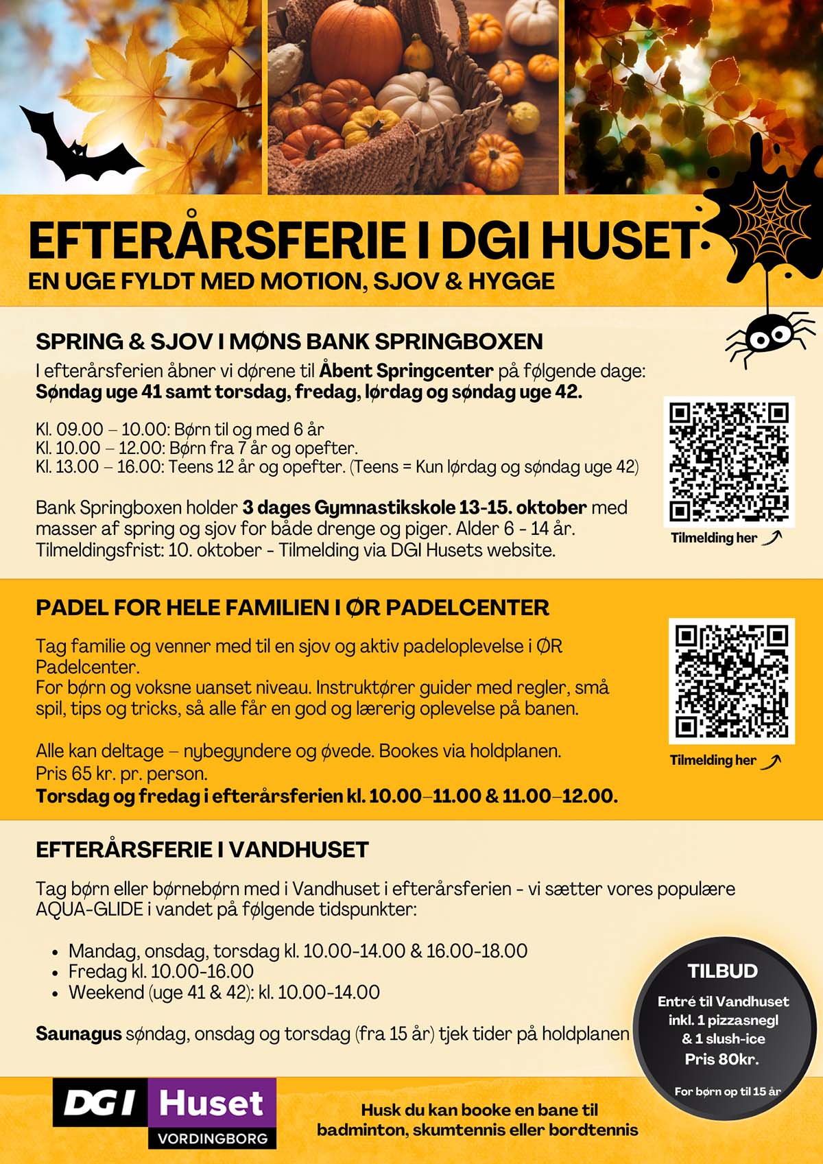Efterårsferien står for døren – og i DGI Huset Vordingborg er der lagt op til en uge med masser af bevægelse, grin og gode oplevelser for både børn og voksne.