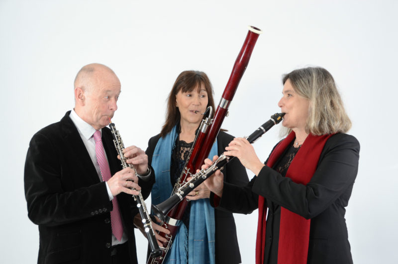 Tre musikere fra Danmarks Underholdningsorkester spiller triomusik for blæsere.