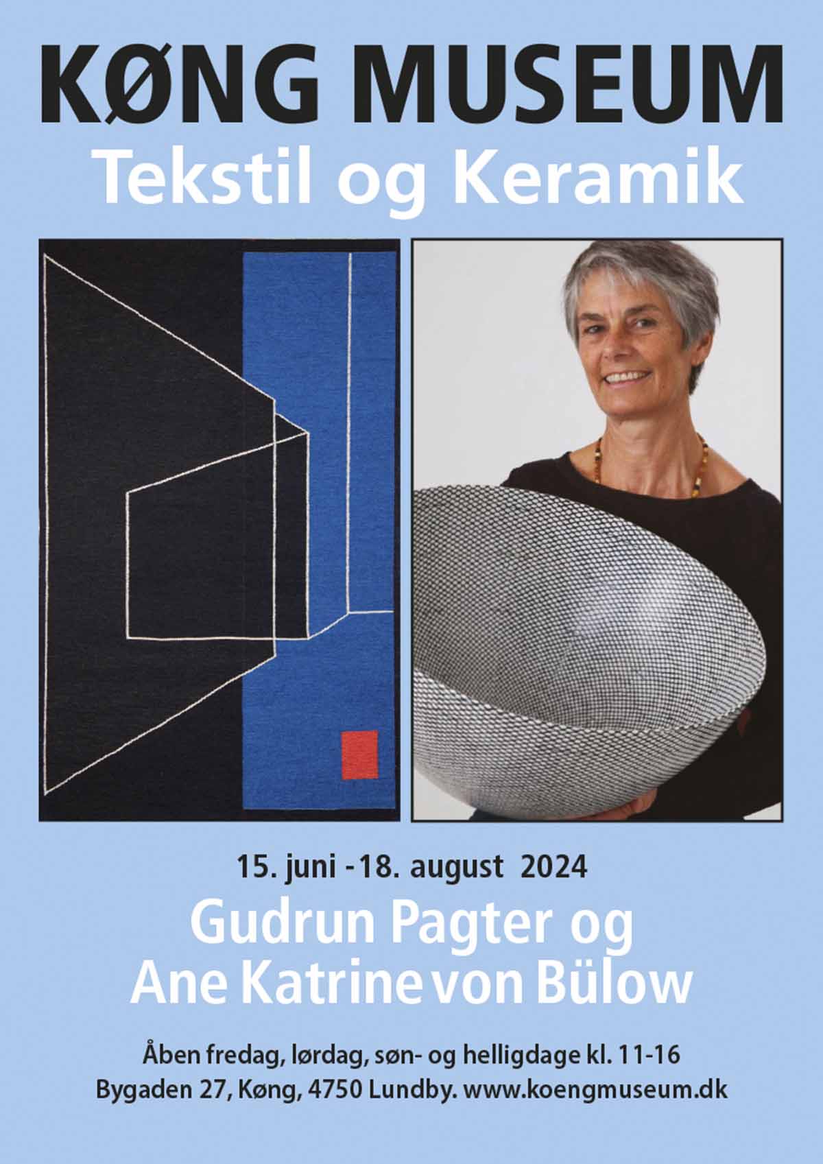 Køng Museum åbner sin sommerudstilling “Tekstil og keramik” lørdag den 15. juni 2024 kl. 13 på Bygaden 27, Køng, 4750 Lundby, hvor kunstnerne vil være til stede.