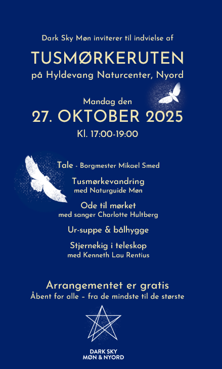 Dark Sky Møn & Nyord inviterer alle til at opleve mørket på en ny måde, når den første af tre nye Tusmørkeruter indvies i Dark Sky Park Nyord mandag den 27. oktober.
